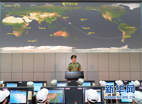 6月16日,中國載人航天工程總指揮常萬全在酒泉衛(wèi)星發(fā)射中心試驗指揮大廳宣布神舟九號飛船發(fā)射成功。 新華社記者 劉建生 攝