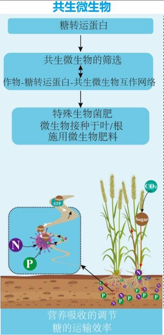 首先,增強(qiáng)糖轉(zhuǎn)運(yùn)蛋白與共生微生物的相互作用是提高作物產(chǎn)量的重要策略之一。互惠微生物宛如一群微小卻神通廣大的“精靈”,與植物締結(jié)了緊密且精妙的共生契約。互惠微生物可以為植物提供更多的營養(yǎng)物質(zhì)如氮、磷、鉀;植物則為微生物提供更多的糖分,二者互利共贏。糖轉(zhuǎn)運(yùn)蛋白就像互惠微生物的“補(bǔ)給車”,負(fù)責(zé)它的能量補(bǔ)給。通過這一策略,可以幫助植物更好地吸收土壤中的養(yǎng)分,比如磷和氮。這就像給植物吃了“營養(yǎng)補(bǔ)品”,讓它們長得更壯實(shí)。