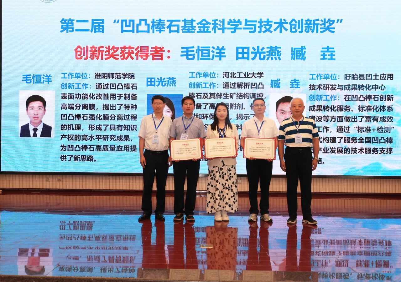 開幕式上,頒發(fā)了第二屆凹凸棒石基金科學(xué)與技術(shù)創(chuàng)新獎,以激勵更多優(yōu)秀人才加入凹凸棒石研究隊伍。蘭州化物所康玉茹高級工程師榮獲進步獎,河北工業(yè)大學(xué)田光燕副教授、淮陰師范學(xué)院毛恒洋副教授和盱眙縣凹土應(yīng)用技術(shù)研發(fā)與成果轉(zhuǎn)化中心臧垚工程師獲得創(chuàng)新獎。