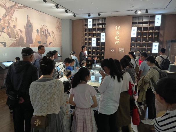 活動(dòng)當(dāng)天,近80組所職工家庭在講解員的帶領(lǐng)下參觀了館內(nèi)《簡述絲路》《簡牘時(shí)代》《邊塞人家》《書于簡帛》等4個(gè)主題的展覽。孩子們在活動(dòng)中認(rèn)識了漢代古紙、馬圈灣毛筆、絲織品等秦漢時(shí)期的重要書寫工具;與父母認(rèn)真辨識著漢簡上的字跡,體會著背后的歷史故事。在博物館的親子互動(dòng)手工制作體驗(yàn)中,大家一起動(dòng)手參與,書寫了精美的漢簡,體驗(yàn)了古人的金石傳拓手藝。