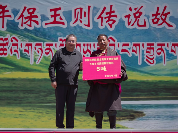 活動首日,幫扶團隊與白玉鄉(xiāng)政府舉行科技幫扶啟動儀式。海北站站長張振華研究員代表團隊向白玉鄉(xiāng)人民政府交接“高原生態(tài)和資源產(chǎn)業(yè)技術服務站”牌匾。該服務站的建立,標志著白玉鄉(xiāng)擁有了集技術咨詢、成果轉化和人才培養(yǎng)于一體的常態(tài)化科技支撐平臺,為當?shù)厣鷳B(tài)保護與產(chǎn)業(yè)發(fā)展提供長效智力支持。民盟青海省委副主委、西北高原所李玉林研究員向對口幫扶的牧羊村捐贈5噸優(yōu)質顆粒飼料,為緩解當?shù)啬撩裨陉P鍵生產(chǎn)時節(jié)面臨的飼料短缺困難提供幫助。