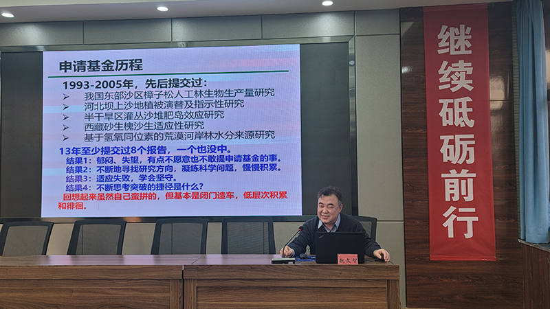 趙文智結(jié)合自身多年來承擔(dān)國家自然科學(xué)基金的申請歷程和作為專家的評審經(jīng)驗,圍繞項目申請書的撰寫、評審流程中的關(guān)鍵點,從選題的確定、摘要的凝練、立項依據(jù)和技術(shù)路線等方面詳細(xì)介紹了相關(guān)技巧和要領(lǐng),并提出了切實可行的申報建議;牛麗從基金管理的角度介紹了西北生態(tài)環(huán)境資源研究院近五年來自然基金申請和資助情況,重點圍繞項目申請中不予受理原因分析、本單位相關(guān)工作舉措和基金申請政策新變化等做了詳細(xì)闡述。最后,兩位專家與參會人員就“科學(xué)問題的發(fā)現(xiàn)凝練”、“項目申報限項”、“包干制”政策及基金申報過程中的重點難點進(jìn)行了深入交流。