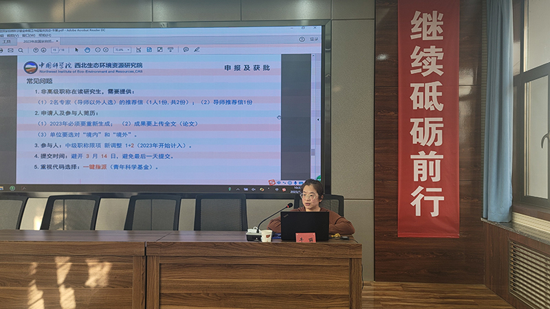 為落實蘭州分院與甘肅省科學(xué)院會商會議精神,幫助甘肅省科學(xué)院提升基金項目申報的水平和質(zhì)量,1月11日,蘭州分院與甘肅省科學(xué)院共同舉辦了國家自然科學(xué)基金申報培訓(xùn)會。會議特邀西北生態(tài)環(huán)境資源研究院研究員、國家自然科學(xué)基金杰出青年基金獲得者趙文智,西北生態(tài)環(huán)境資源研究院科研管理處牛麗博士交流分享基金申報和管理經(jīng)驗。蘭州分院科技合作處、甘肅省科學(xué)院科研處、甘肅省科學(xué)院所屬研究所科研代表共計60余人參加會議。