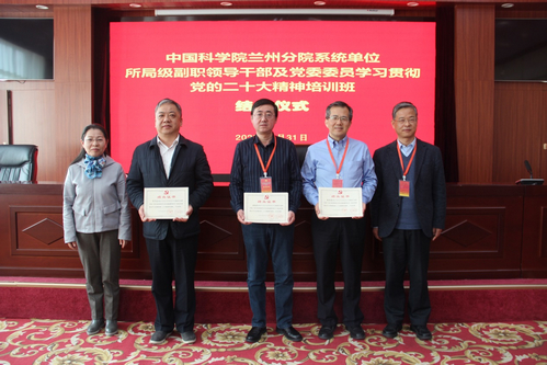 結業(yè)式上,蘭州分院分黨組副書記陳改學為學員頒發(fā)結業(yè)證,并代表蘭州分院分黨組對參訓學員提出三點希望:一是要持續(xù)在黨的二十大精神全面學習上下功夫,始終在思想上、政治上、行動上同以習近平同志為核心的黨中央保持高度一致;二是要持續(xù)在黨的二十大精神全面把握上下功夫,把學習好、宣傳好、貫徹好黨的二十大精神與開展學習貫徹習近平新時代中國特色社會主義思想主題教育結合起來,制定學習教育長效機制,確保常態(tài)長效;三是要持續(xù)在黨的二十大精神全面落實上下功夫,積極推動黨的二十大精神、習近平總書記對中科院的重要指示批示精神和院黨組各項重大決策部署落實落細,把黨的二十大精神和習近平新時代中國特色社會主義思想學習成果轉化為推動工作的強大力量,為實現高水平科技自立自強、建設世界科技強國,作出新的更大貢獻。
