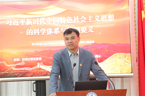 根據(jù)蘭州分院分黨組關(guān)于開展好學(xué)習(xí)貫徹習(xí)近平新時(shí)代中國特色社會主義思想主題教育的系列工作要求,會議第二階段進(jìn)行了主題教育專題團(tuán)課報(bào)告會,邀請?zhí)m州大學(xué)馬克思主義學(xué)院王彥濤副教授作《習(xí)近平新時(shí)代中國特色社會主義思想的科學(xué)體系與精髓要義》專題報(bào)告。報(bào)告從“習(xí)近平新時(shí)代中國特色社會主義思想是如何創(chuàng)立的”“習(xí)近平新時(shí)代中國特色社會主義思想回答了什么重大時(shí)代課題”“習(xí)近平新時(shí)代中國特色社會主義思想主要包含哪些內(nèi)容”“如何理解習(xí)近平新時(shí)代中國特色社會主義思想的歷史地位”“如何學(xué)好用好習(xí)近平新時(shí)代中國特色社會主義思想”5個(gè)方面系統(tǒng)講解了習(xí)近平新時(shí)代中國特色社會主義思想的思想內(nèi)涵與重大意義,報(bào)告內(nèi)容詳實(shí)、生動全面,為與會團(tuán)員青年進(jìn)一步接受主題教育起到了良好的指導(dǎo)作用。