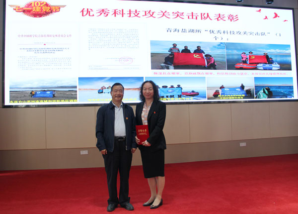 大會宣讀了《中共中國科學院黨組關(guān)于表彰中國科學院優(yōu)秀共產(chǎn)黨員、優(yōu)秀黨務(wù)工作者和先進基層黨組織的決定》《中共中國科學院蘭州分院分黨組關(guān)于表彰先進基層黨組織、優(yōu)秀共產(chǎn)黨員和優(yōu)秀黨務(wù)工作者的決定》。表彰了優(yōu)秀科技攻關(guān)突擊隊“張彭熹鹽湖科考突擊隊”。?