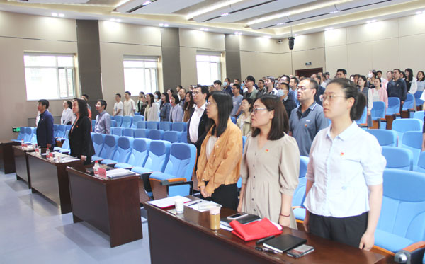 會議舉行了新黨員宣誓儀式。面向鮮紅的黨旗,副所長王建萍帶領(lǐng)新黨員莊嚴宣誓,在場全體黨員重溫入黨誓詞。?