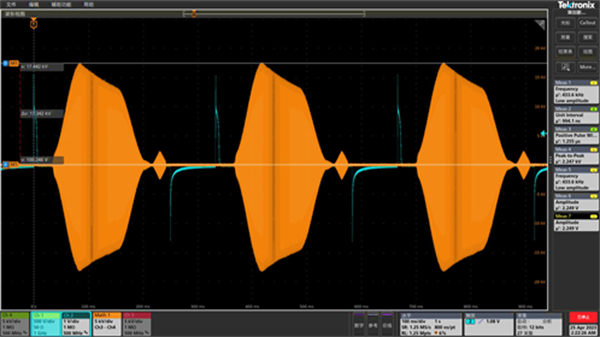 圖2:3Hz腔體單間隙電壓取樣信號(hào),腔體包含三個(gè)加速間隙