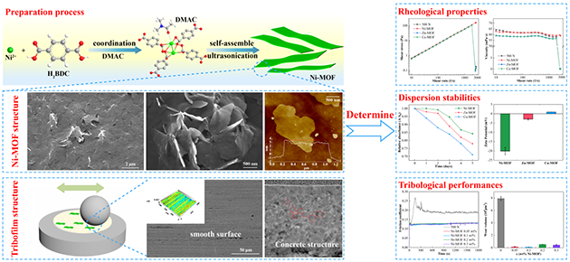 基于原位摩擦催化設(shè)計(jì)理念,研究人員將超薄2D-MOF納米片添加至500N中,Ni-MOF與基礎(chǔ)油分子和Fe基體發(fā)生催化化學(xué)反應(yīng),形成由鐵氧化物、碳基物質(zhì)和氮基物質(zhì)組成的具有混凝土結(jié)構(gòu)的碳基摩擦膜,使摩擦系數(shù)和磨損分別降低33.2%和98.7%。相關(guān)成果發(fā)表在Materials & Design(2022,223:111251,DOI: 10.1016/j.matdes.2022.111251)與《中國(guó)科學(xué):技術(shù)科學(xué)》(2022, 53(3):1674-7259, DOI: 10.1360/SST-2022-0162)上。