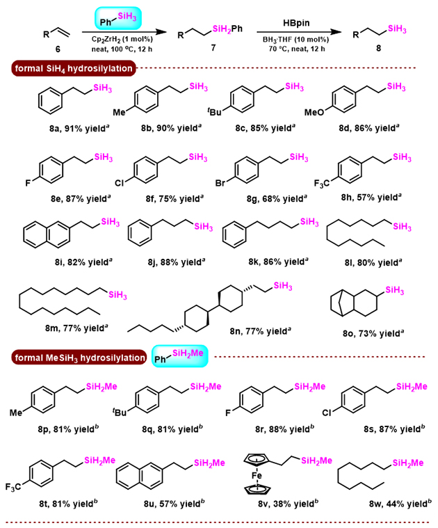 圖2.烯烴與SiH4和MeSiH3的形式硅氫化反應(yīng)