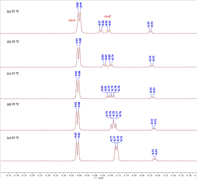圖2 Zn-2(MCP-ZnBr2)配合物的變溫核磁圖譜