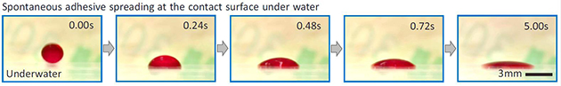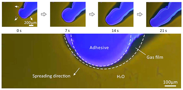 圖2 SLU-adhesive水下動態(tài)浸潤和黏附過程