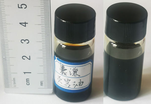 中國科學院青海鹽湖研究所馬海州研究員研究團隊,多年來持續(xù)在青海省玉樹州囊謙縣含鹽盆地開展研究工作,由于油-鹽共生是普遍的地質(zhì)現(xiàn)象,在考察古近紀貢覺組含鹽地層過程中,課題組在囊謙盆地多處發(fā)現(xiàn)了厚層優(yōu)質(zhì)油頁巖,采集的油頁巖樣品可直接點燃(圖1)。近日,課題組自主設計了油頁巖干餾的實驗裝置,并在干餾實驗中成功獲得了頁巖油(圖2),目前利用青藏高原的油頁巖開展干餾實驗研究國內(nèi)外尚未見報道。干餾所獲得的頁巖油經(jīng)中國科學院西北生態(tài)環(huán)境資源研究院油氣研究中心吳應琴研究員和青海大學祁昭林博士分析,其族分為瀝青質(zhì)占0.53%、飽和烴占18.83%、芳烴占12.83%、非烴占67.67%,與我國撫順、茂名和美國綠河及愛沙尼亞的油頁巖干餾頁巖油類似。頁巖油經(jīng)過加工精制,除了可以得到汽油、柴油、煤油外,還可以獲得石蠟、酚類等化工副產(chǎn)品。