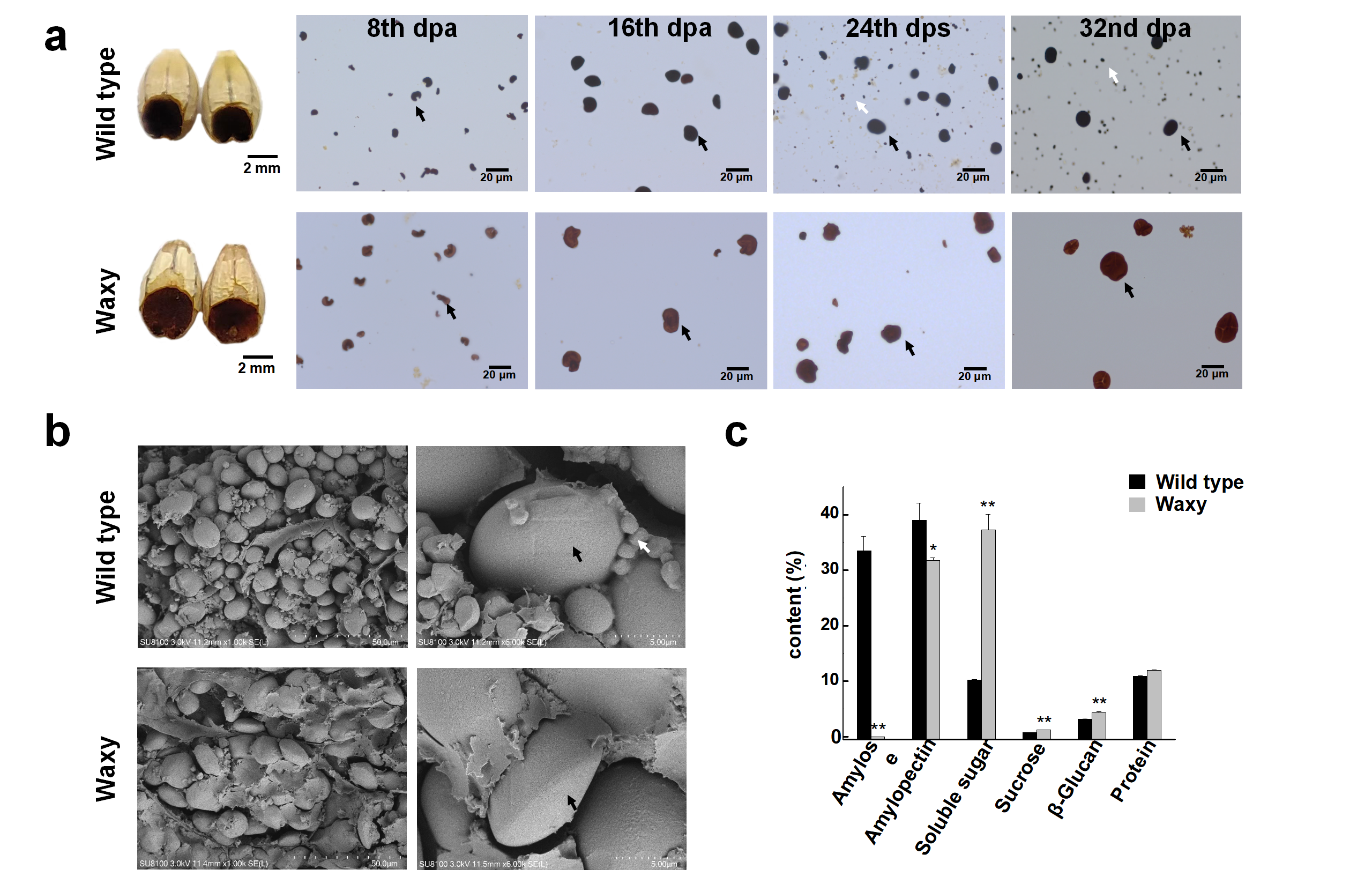 ?Waxy突變系的胚乳特征和籽粒組分變化