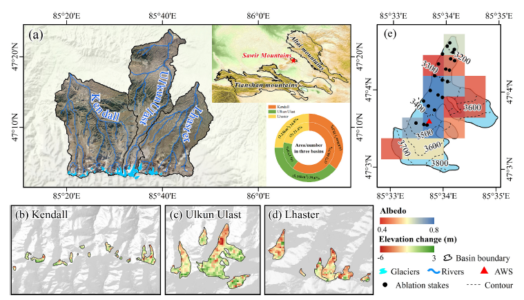 中國科學(xué)院西北生態(tài)環(huán)境資源研究院王璞玉研究員團(tuán)隊依托阿爾泰山冰凍圈科學(xué)與可持續(xù)發(fā)展綜合觀測研究站,綜合運(yùn)用模型模擬、衛(wèi)星遙感技術(shù)和野外觀測,系統(tǒng)分析了薩吾爾山冰川反照率變化及其與冰川消融的關(guān)系,重建了該區(qū)冰川物質(zhì)平衡序列,闡述了其與融水徑流的變化趨勢以及對河川徑流的影響。