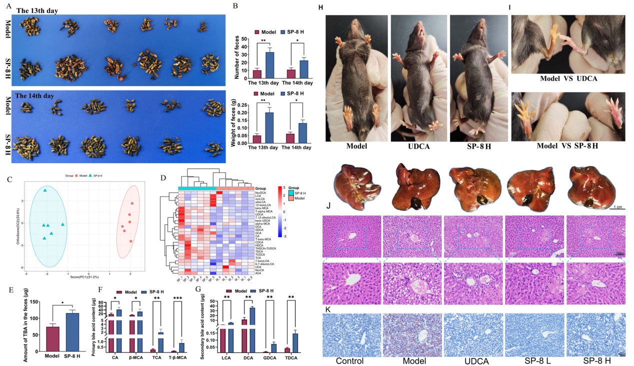 膽汁淤積性肝?。–LD)是一種復雜的肝膽疾病,由肝細胞水平的膽汁形成缺陷或膽管水平的膽汁分泌和流動受損引起。根據(jù)膽汁淤積的不同部位,可分為肝內(nèi)膽汁淤積和肝外膽汁淤積。其共同特點是肝細胞內(nèi)膽汁酸(BAs)等有毒物質(zhì)的過度積累引起膽汁淤積性肝損傷。持續(xù)性膽汁淤積可進一步誘導氧化應激和炎癥信號反應,最終導致肝纖維化或肝細胞壞死。近年來,全球膽汁淤積癥的發(fā)病率逐年上升,尤其是在兒童、青少年和婦女中高發(fā)。目前,我國仍然缺少具有自主知識產(chǎn)權(quán)的高效的治療CLD的藥物。臨床上治療一直依賴美國FDA認證的熊去氧膽酸和奧貝膽酸,但它們的有效率不足50%,副作用明顯且價格昂貴。