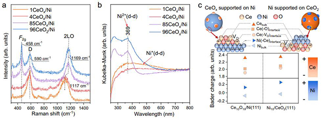 研究表明,4CeOx/Ni反相催化劑中稀土氧化物與金屬鎳之間強電子相互作用誘導了界面富電子Ni-VO-Ce催化位點的生成,從而增強其對特定醚C-O鍵的選擇性吸附,同時促進界面活性Hδ?物種的形成;兩者協(xié)同作用,實現(xiàn)了C-O鍵氫解速率的顯著提高。該研究加深了對金屬-氧化物界面電子強相互作用的認識,為生物質(zhì)和廢棄塑料高值轉(zhuǎn)化催化劑的設計提供了新思路。