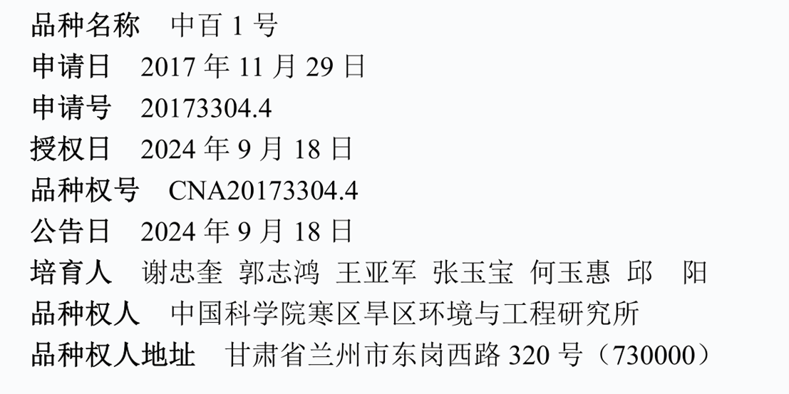 近日,中國科學(xué)院西北生態(tài)環(huán)境資源研究院蘭州生態(tài)農(nóng)業(yè)試驗(yàn)研究站(簡(jiǎn)稱“蘭州農(nóng)業(yè)站”)謝忠奎研究員團(tuán)隊(duì)自主選育的“中百1號(hào)”蘭州百合新品種上榜農(nóng)業(yè)農(nóng)村部2024年第826號(hào)授予植物新品種權(quán)名單。這是我國首個(gè)被授予植物新品種權(quán)的優(yōu)質(zhì)高產(chǎn)食用百合品種,同時(shí)也是西北研究院首次獲植物品種權(quán)授權(quán)。