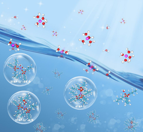 水合鋰離子與磷酸三丁酯(TBP)絡合機理示意圖