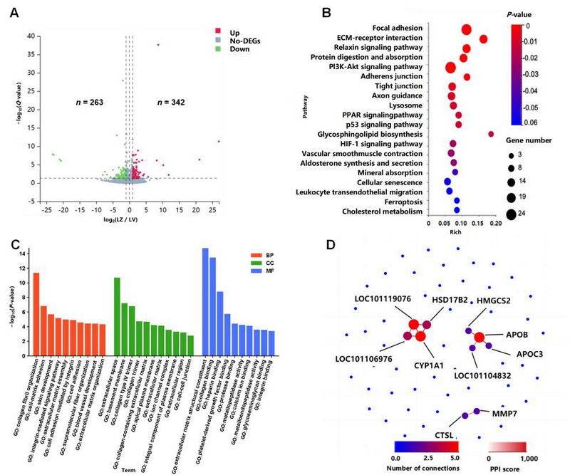 動(dòng)物對(duì)極端環(huán)境的適應(yīng)已成為近年來(lái)研究的熱點(diǎn)。多數(shù)高原適應(yīng)研究以分布于平原與高原的動(dòng)物為研究對(duì)象,而本研究以分布于高原地區(qū)不同海拔梯度的扎什加羊(海拔4300米)和山谷型藏羊(海拔1800米)為研究對(duì)象,通過(guò)選擇性消除分析、肺臟和肝臟轉(zhuǎn)錄組學(xué)分析,首次探討了藏羊在高原上不同海拔梯度的適應(yīng)機(jī)制。研究結(jié)果發(fā)現(xiàn),藏羊可能通過(guò)減少脂質(zhì)代謝、增強(qiáng)血管平滑肌和心臟收縮能力、調(diào)節(jié)體液平衡、提升免疫功能及抗氧化應(yīng)激能力等生理功能適應(yīng)極端高原環(huán)境。本研究為全面理解藏羊遺傳資源及其高原適應(yīng)機(jī)制提供了新的視角,同時(shí)為高原生物的適應(yīng)性進(jìn)化研究提供了重要科學(xué)依據(jù)。