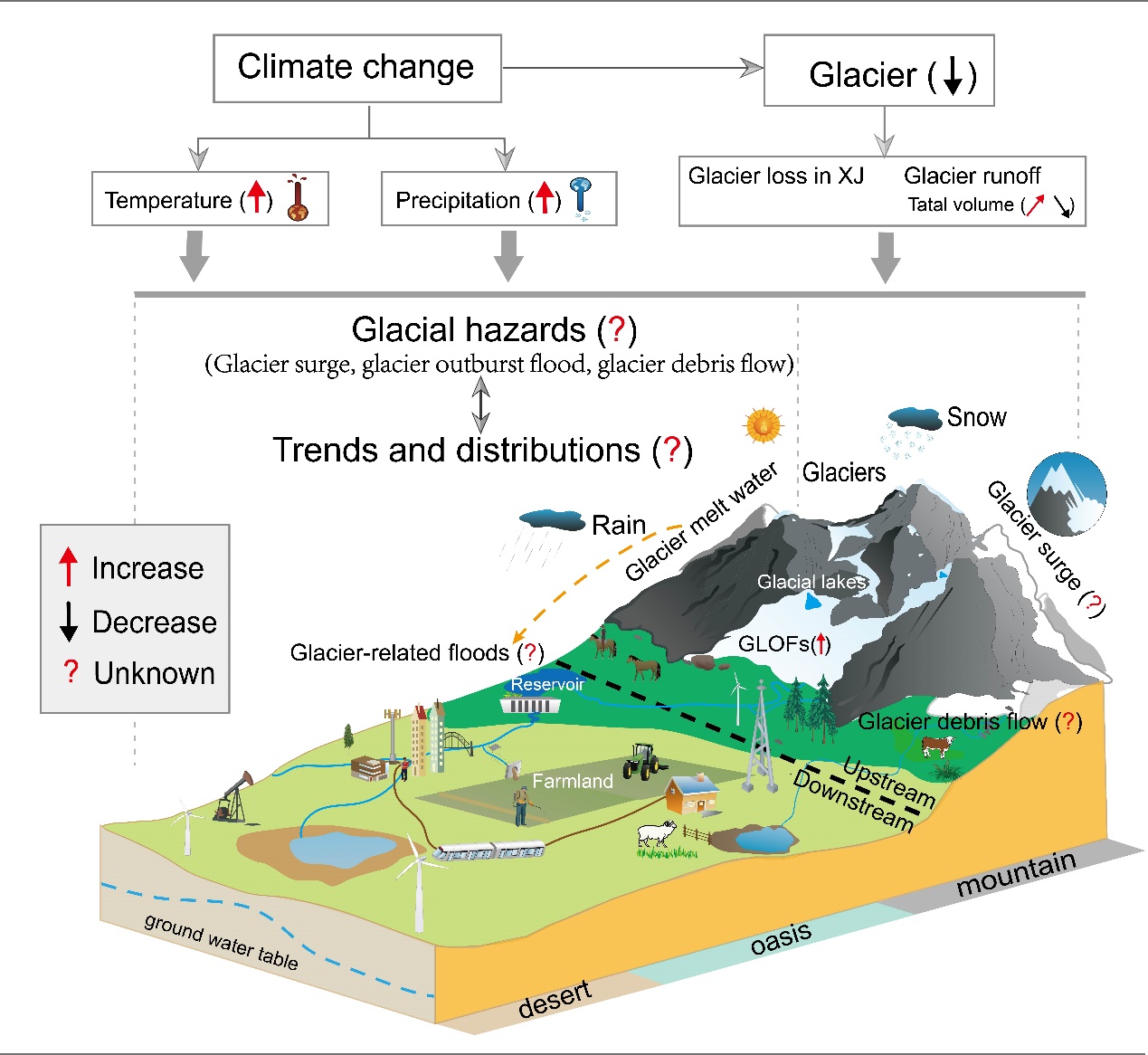 新疆冰川數(shù)量占我國冰川總數(shù)的42%以上。隨著氣候變暖和極端降水事件的頻率增加,冰川持續(xù)退縮導致災害頻發(fā),對下游數(shù)百至數(shù)千公里的城鎮(zhèn)基礎設施和生態(tài)環(huán)境造成了嚴重影響。目前,對新疆冰川災害的研究多局限于獨立事件的單災害類型。因此,對新疆冰川災害進行系統(tǒng)梳理和綜述研究,對揭示冰川災害發(fā)生過程、孕災環(huán)境和機理具有重要意義,有助于提高對冰川災害的認識,為當?shù)胤罏臏p災工作提供科學支撐。