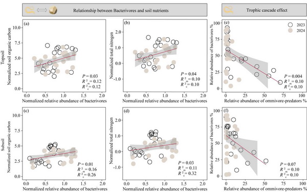 圖2?食細菌線蟲與土壤養(yǎng)分的關系,食菌線蟲與雜食性-捕食性線蟲的關系