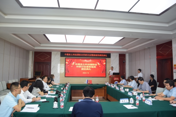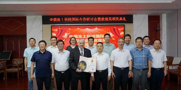 康世昌首先致辭,回顧了西北研究院與俄羅斯科學(xué)院梅爾尼科夫多年凍土研究所的合作交流歷史,以及在寒區(qū)環(huán)境與工程方面取得的突出合作成果等,展望了新形勢(shì)下中俄凍土科技國(guó)際合作的前景與重大意義,并祝賀亞洲寒區(qū)環(huán)境與工程國(guó)家中心外方主任ZHELEZNIAK MIKHAIL(熱哈雅茲尼亞克·米哈伊爾)院士獲2022年甘肅省外國(guó)專家“敦煌獎(jiǎng)”。隨后,謝正團(tuán)為熱哈雅茲尼亞克·米哈伊爾頒發(fā)獲獎(jiǎng)證書并表示祝賀,感謝其積極推動(dòng)中俄在凍土研究領(lǐng)域的務(wù)實(shí)國(guó)際合作,為中俄友好交流與凍土科技合作研究作出的巨大貢獻(xiàn)。熱哈雅茲尼亞克·米哈伊爾表示感謝并發(fā)表獲獎(jiǎng)感言。