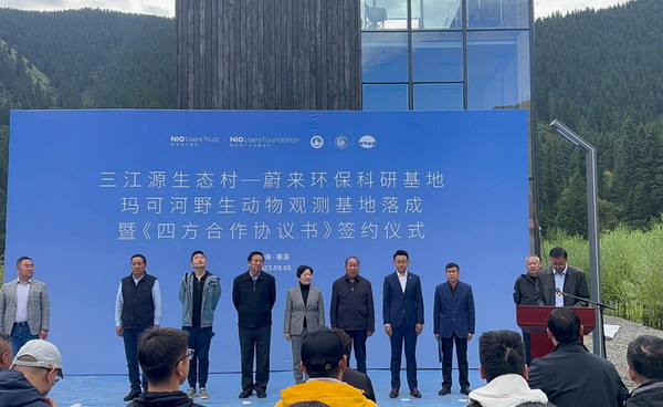 蔚來(lái)用戶(hù)公益基金會(huì)、三江源生態(tài)保護(hù)基金會(huì)、中國(guó)科學(xué)院三江源國(guó)家公園研究院、青海省瑪可河林業(yè)局共同為新建成瑪可河野生動(dòng)物觀(guān)測(cè)基地揭牌。楊勇剛代表三江源國(guó)家公園研究院致辭,強(qiáng)調(diào)合作單位必須深入貫徹習(xí)近平總書(shū)記考察青海重要講話(huà)精神,積極踐行習(xí)近平生態(tài)文明思想,同時(shí)也希望在四方單位領(lǐng)導(dǎo)的關(guān)心、關(guān)懷下,在各位嘉賓的鼎力支持下,瑪可河林場(chǎng)野生動(dòng)物觀(guān)測(cè)基地為國(guó)家公園省的打造、建設(shè)生態(tài)文明高地做出新貢獻(xiàn)。