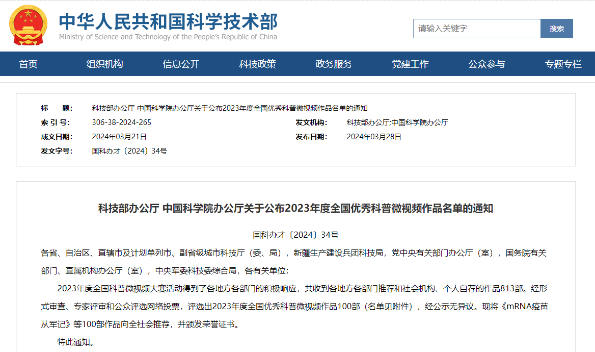 據(jù)悉,2023年度全國科普微視頻大賽共收到各地方各部門推薦和社會機構(gòu)、個人自薦的作品813部,經(jīng)形式審查、專家評審和公眾評選網(wǎng)絡(luò)投票,評選出2023年度全國優(yōu)秀科普微視頻作品100部。