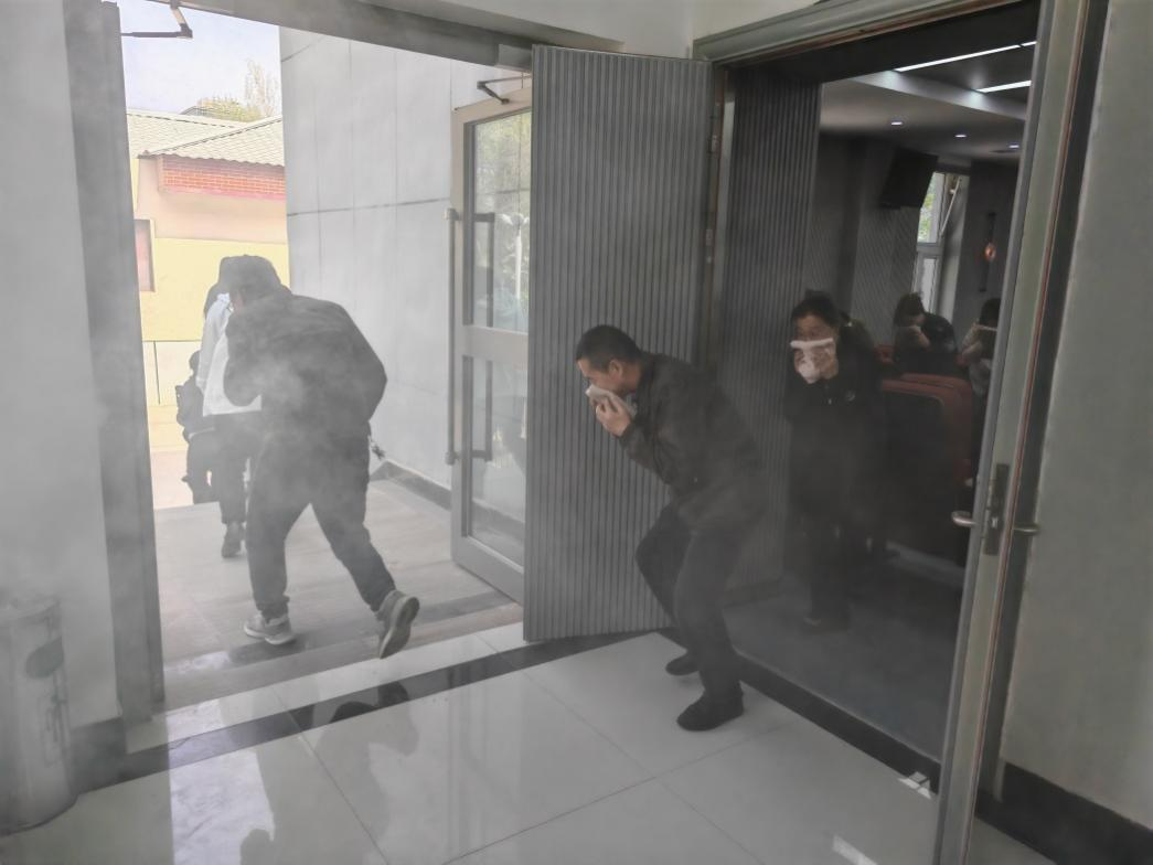 理論培訓后,參訓人員在政安消防工作人員指導下開展實戰(zhàn)演練。模擬場景設(shè)定為學術(shù)報告廳因電路短路引發(fā)火情,濃煙迅速蔓延。隨著警報響起,應急指揮組立即啟動預案,疏散引導員按分工組織人員低姿捂鼻,沿安全通道撤離至指定集合點。隨后,又組織人員使用干粉滅火器對模擬火源進行撲滅。整個演練過程響應迅速、分工明確,快速進行安全疏散。