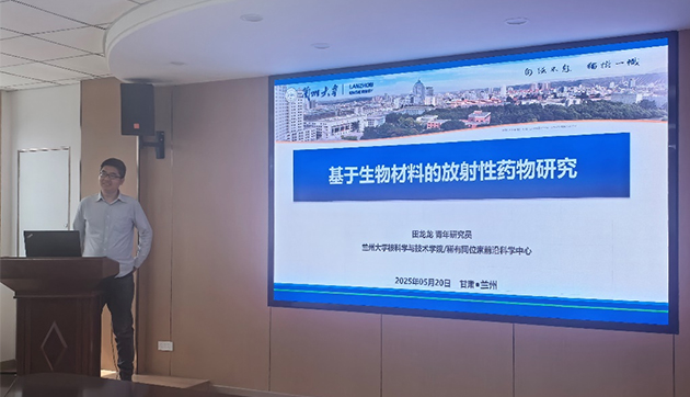 田龍龍作了題為“基于生物材料的放射性藥物研究”的報(bào)告。介紹了醫(yī)用核素的國(guó)內(nèi)外發(fā)展現(xiàn)狀以及我國(guó)醫(yī)用核素治療藥物的發(fā)展歷程及相關(guān)政策。重點(diǎn)分享了其團(tuán)隊(duì)在核素藥物研究方面的系列成果,特別是在利用生物材料增強(qiáng)核藥治療效果方面的最新研究進(jìn)展,他們通過以細(xì)菌合成的聚合物微球材料緩釋病原相關(guān)分子、天然松花粉作為載體緩釋多糖、生物來源的囊泡激活天然免疫等策略構(gòu)建靶向核素治療藥物、近距離放療的核素治療藥物,最終實(shí)現(xiàn)低劑量、強(qiáng)效的核素-免疫聯(lián)合治療。