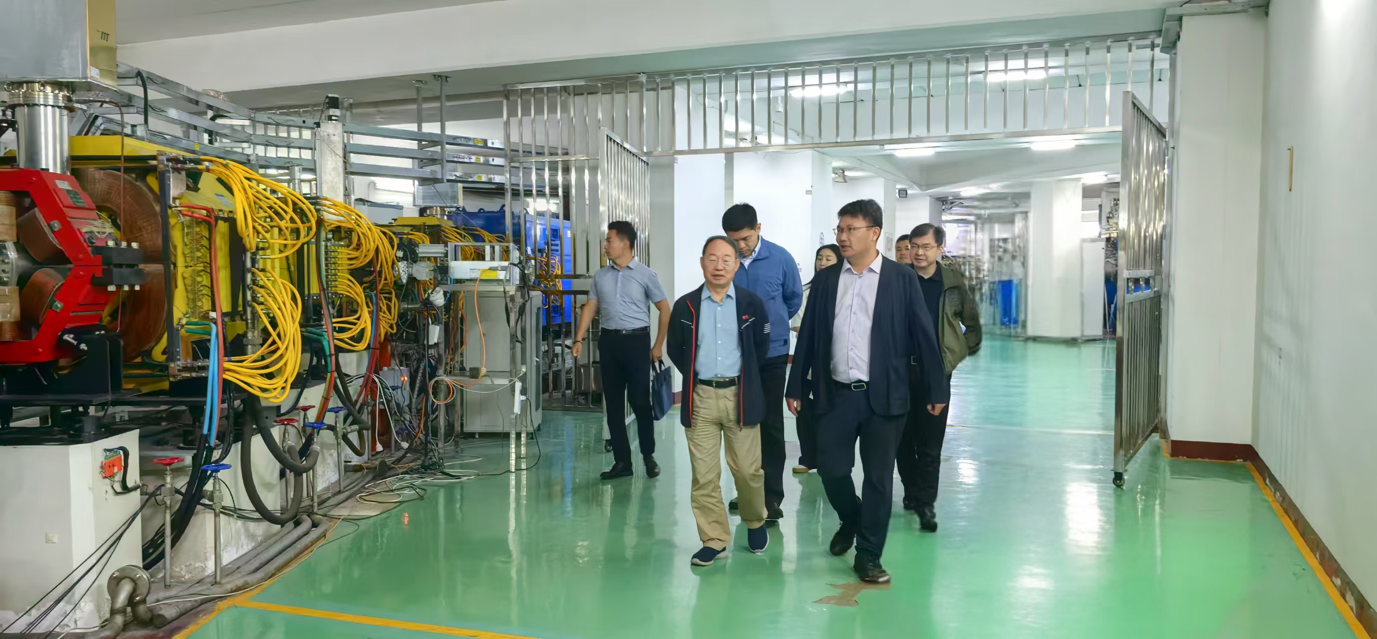 隨后,胡正國(guó)陪同聶生奎一行實(shí)地參觀了“國(guó)際反質(zhì)子與離子大科學(xué)研究基地”的依托平臺(tái)----蘭州重離子加速器國(guó)家實(shí)驗(yàn)室(HIRFL)。通過(guò)近距離觀摩,調(diào)研組詳細(xì)了解了大科學(xué)裝置在核物理、重離子科學(xué)及交叉學(xué)科研究中的所取得的科技成果和技術(shù)創(chuàng)新。聶生奎高度評(píng)價(jià)HIRFL作為我國(guó)核物理與重離子科學(xué)領(lǐng)域的重要研究平臺(tái),HIRFL長(zhǎng)期致力于科技創(chuàng)新與學(xué)術(shù)交流,成為持續(xù)有效開(kāi)展國(guó)際科技交流與合作的典范。