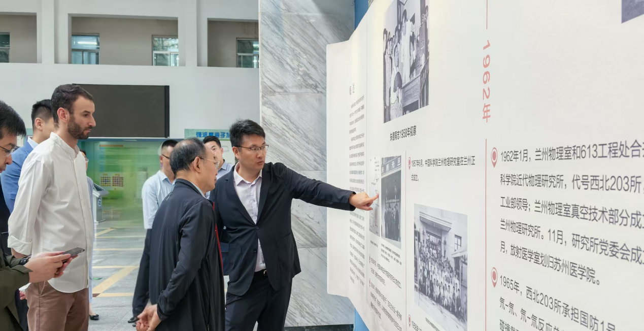 胡正國(guó)對(duì)聶生奎一行的到訪表示熱烈歡迎,并由衷感謝人社部外專(zhuān)司長(zhǎng)期以來(lái)對(duì)研究所國(guó)際交流工作的大力支持。在國(guó)家實(shí)驗(yàn)室展廳,胡正國(guó)系統(tǒng)介紹了研究所的發(fā)展歷程、人才隊(duì)伍建設(shè)成果、重大科研產(chǎn)出以及基地的國(guó)際科技合作情況。期間,他特別講述了以楊澄中先生為代表的老一輩科學(xué)家扎根西部、矢志報(bào)國(guó)的感人事跡,展現(xiàn)了近代物理所傳承科學(xué)家精神、勇攀科技高峰的堅(jiān)定信念。