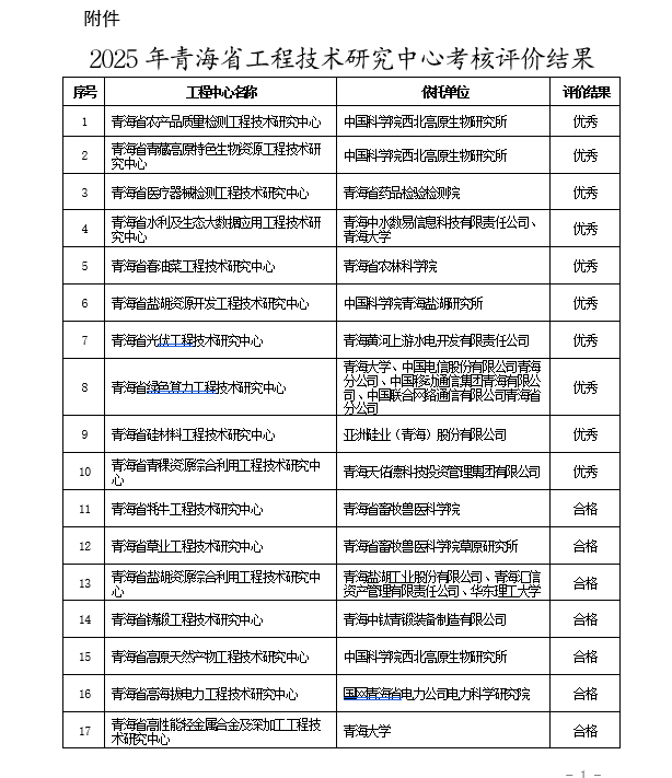 近日,青海省科技廳公布了2025年度青海省工程技術(shù)研究中心年度考核評價結(jié)果。全省參加本次考核評價工作的工程技術(shù)研究中心共73家。經(jīng)集中匯報專家定性評價程序,10家工程技術(shù)研究中心被評估為優(yōu)秀,57家被評估為合格。中國科學(xué)院西北高原生物研究所公共技術(shù)中心生態(tài)環(huán)境資源分析檢測平臺“青海省農(nóng)產(chǎn)品質(zhì)量檢測工程技術(shù)研究中心”和藏藥標(biāo)準(zhǔn)化與新藥研發(fā)平臺"青藏高原特色生物資源工程技術(shù)研究中心"在本次考核評價中喜獲佳績,分別獲得第1名和第2名的優(yōu)秀成績。