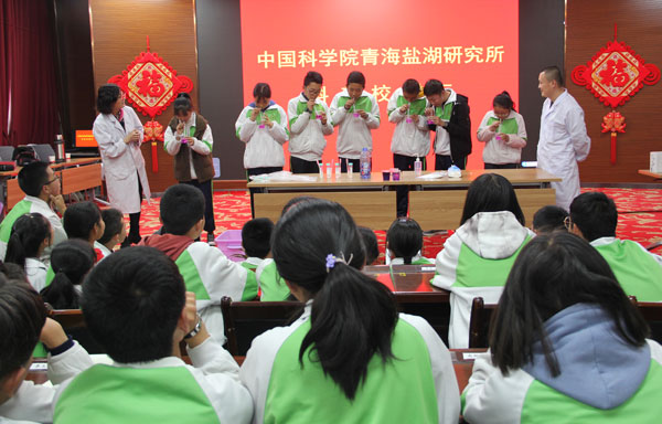 11月4日,在中國科學院第三屆科學節(jié)活動期間,青海鹽湖所組織博士科普團走進青海省海東市樂都區(qū)七里店中學開展科普進校園活動,近150名中學生參加了活動。本屆科學節(jié)以“嗨,科學!”為主題,將在中國科學院全國各院屬單位開展形式多樣、內(nèi)容豐富的科普活動。
