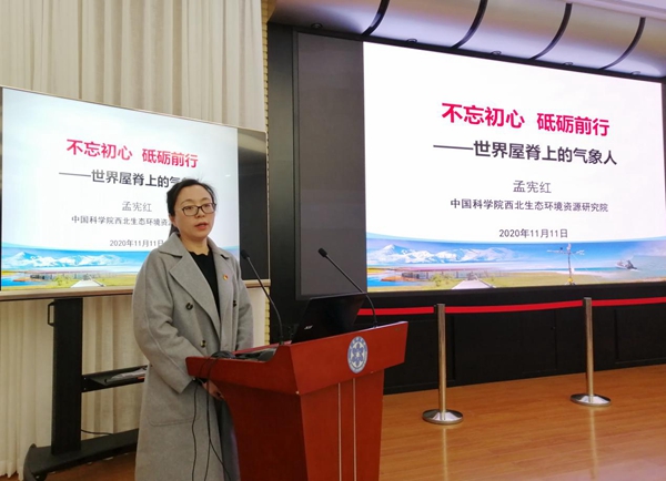 報告會特邀2019 年“中國科學院年度感動人物”入選者孟憲紅研究員作《不忘初心、砥礪前行——世界屋脊上的氣象人》主題報告。孟憲紅研究員從“懷揣夢想、千里求學”“情系高原、筑夢大氣”“潛心科研、銳意進取”“不忘初心、”砥礪前行四個方面分享了她的求學、科研經(jīng)歷和感悟。從樸實無華的語言中令人看到她帶領(lǐng)團隊始終秉承“特別能吃苦、特別能戰(zhàn)斗、特別能奉獻、特別能團結(jié)、特別能忍耐”的“牦牛精神”,面對困難她披荊斬棘、堅守信念,把科學研究當作自己的生命,用勤奮鋪就科研之路,用韌性點燃科研之旅。
