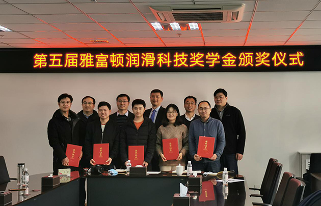 1月27日,中國科學(xué)院蘭州化學(xué)物理研究所第五屆雅富頓潤滑科技獎學(xué)金頒獎儀式在青島研發(fā)中心舉行。雅富頓添加劑公司亞太區(qū)技術(shù)總監(jiān)梁克堅先生、蘭州化物所相關(guān)部門負(fù)責(zé)人參加了頒獎儀式。喻萍、蘇懷剛、鞠超、張立強(qiáng)、白常寧等5名學(xué)生獲2021年度獎學(xué)金。