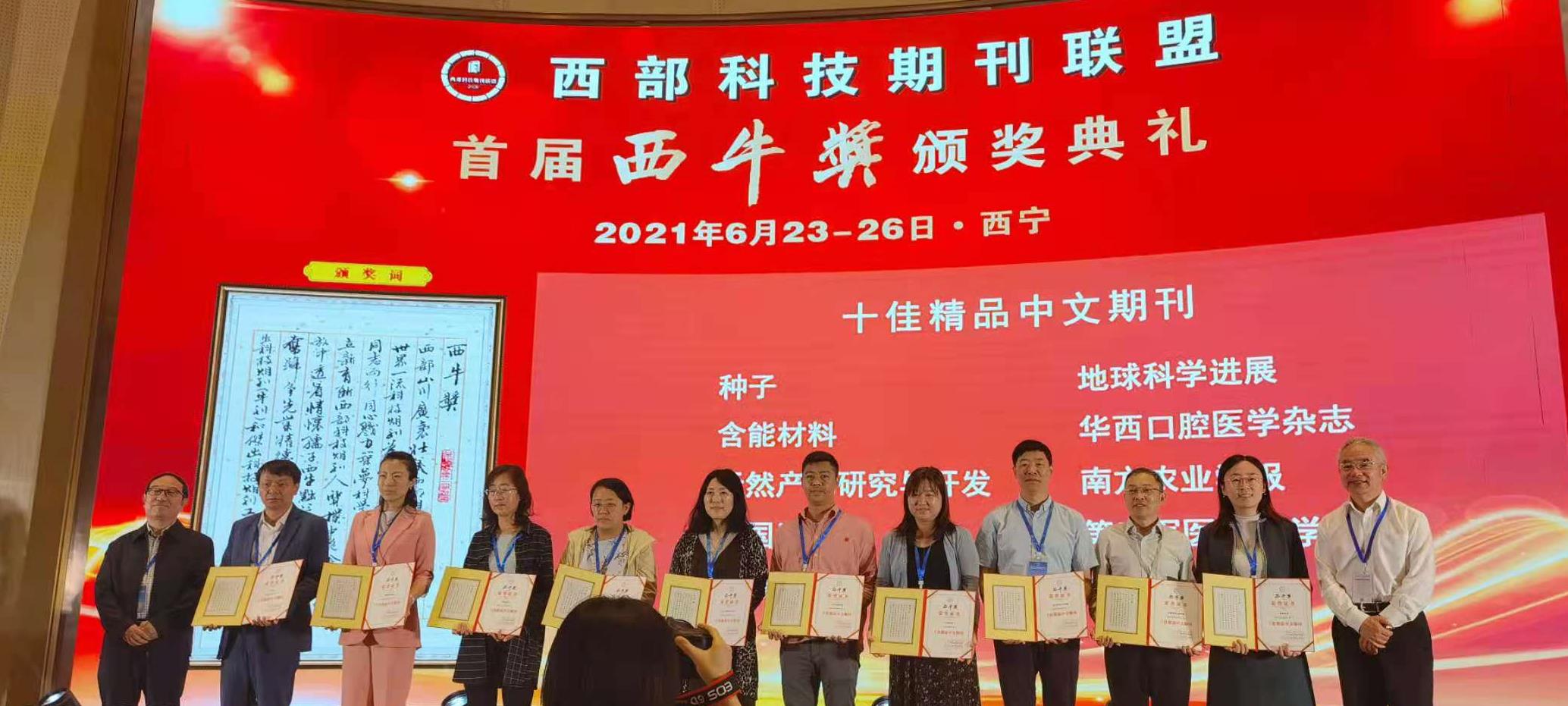 會上還舉行了由西部科技期刊聯(lián)盟評選的首屆西牛獎的頒獎典禮,共59家期刊、10個新媒體平臺、18個編輯團隊以及59位主編(社長)、編輯部主任、編輯獲獎。西北研究院主辦的《地球科學(xué)進展》獲“十佳精品中文期刊”,《中國沙漠》獲“十佳優(yōu)秀中文期刊”,Sciences in Cold and Arid Regions獲“十佳優(yōu)秀英文期刊”,《天然氣地球科學(xué)》編輯團隊、《黃金科學(xué)技術(shù)》學(xué)術(shù)出版團隊獲“十佳編輯團隊”,侯春梅被評為“十佳主編(社長)”,馬素萍被評為“十佳編輯部主任”,賀郝鈺、李小燕被評為“十佳編輯”,陶華被評為“十佳青年編輯”。