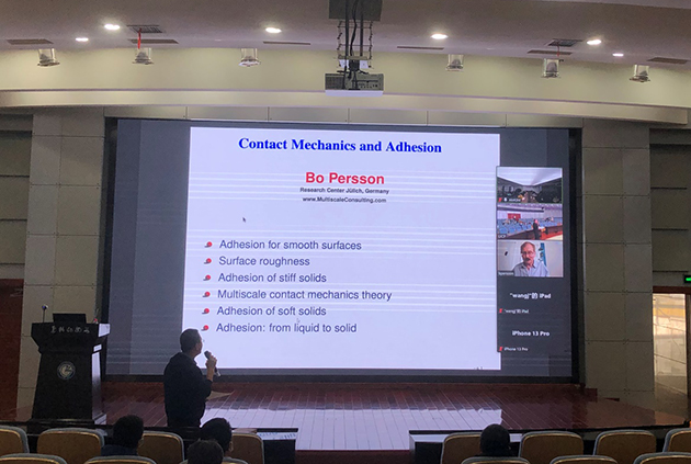3月25日,中國科學(xué)院蘭州化學(xué)物理研究所固體潤滑國家重點(diǎn)實(shí)驗(yàn)室邀請德國于利希(Jülich)研究中心科學(xué)家、Multiscale咨詢公司首席執(zhí)行官B.N.J. Persson教授作在線學(xué)術(shù)報(bào)告,報(bào)告題目為“Adhesion of stiff and soft solids: the role of surface roughness”。報(bào)告由固體潤滑國家重點(diǎn)實(shí)驗(yàn)室副主任王鵬研究員主持,100余名科研人員參加了報(bào)告會。