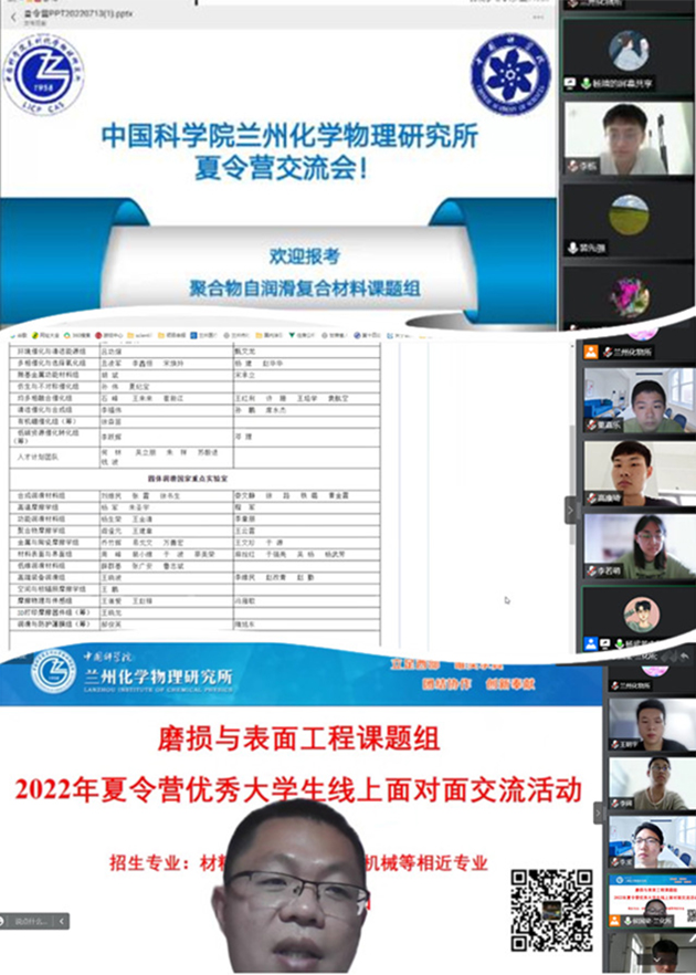7月10至15日,中國科學(xué)院蘭州化學(xué)物理研究所舉辦了2022年“蘭化行,科研情”優(yōu)秀大學(xué)生線上夏令營。本次夏令營與中科院蘭州教育基地“我的科學(xué)夢”優(yōu)秀大學(xué)生暑期學(xué)校同期舉行,來自吉林大學(xué)、青海大學(xué)、山東師范大學(xué)等高校的70名優(yōu)秀大學(xué)生參加了夏令營。結(jié)合疫情防控要求,夏令營以線上形式舉行。