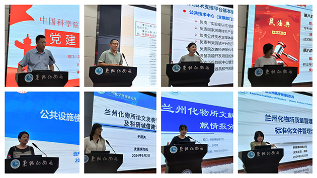 所長周峰作了題為“蘭州化物所所情及科技創(chuàng)新工作”的報告,介紹了研究所歷史沿革與主要貢獻、科研平臺與人才隊伍、承擔(dān)任務(wù)與成果產(chǎn)出、科技合作與成果轉(zhuǎn)化、“十四五”規(guī)劃與目標等情況。紀委書記張景光作了題為“廉潔、誠信與安全第一課”的報告,組織學(xué)習(xí)了黨的二十屆三中全會精神和習(xí)近平總書記關(guān)于全面從嚴治黨、自我革命、科技創(chuàng)新的重要論述,傳達了中國科學(xué)院黨組2024年夏季擴大會議和院科研誠信會議的有關(guān)工作部署,通報了違紀違規(guī)和科研失信行為的典型案例。
