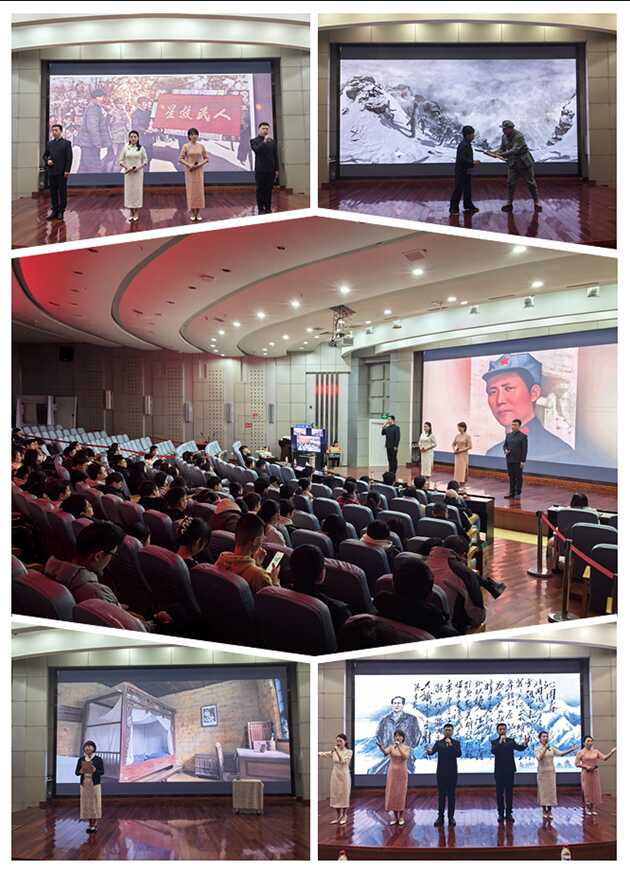 報(bào)告會(huì)邀請(qǐng)了甘肅高臺(tái)干部學(xué)院6名老師作了題為《品讀主席詩詞?汲取奮進(jìn)力量》的情景黨課,黨課以毛澤東詩詞為創(chuàng)作主線,綜合運(yùn)用背景講述、情景表演、詩詞誦讀、旁白解說等形式,結(jié)合歷史背景和感人革命故事,分為“道路的力量”“信仰的力量”“真情的力量”“人民的力量”四個(gè)篇章,用詩詞話黨史,生動(dòng)再現(xiàn)中國(guó)共產(chǎn)黨領(lǐng)導(dǎo)全國(guó)各族人民救亡圖存和勵(lì)精圖治的價(jià)值取向與使命擔(dān)當(dāng),帶領(lǐng)在場(chǎng)研究生重溫崢嶸歲月,賡續(xù)中國(guó)共產(chǎn)黨人精神血脈。