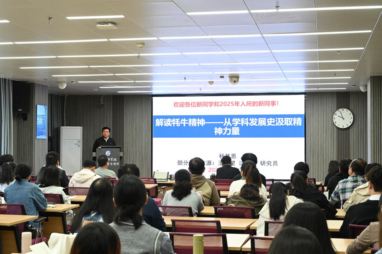 8日上午,入學典禮在莊嚴的國歌聲中拉開序幕。陳世龍首先作了“弘揚科學精神,加強學風建設”專題報告,強調(diào)了在科研的道路上,傳承好科學精神,遵循唯真求實、嚴謹本分、非所屬者不取、非原創(chuàng)者謙卑的原則和系好學術(shù)人生的第一??圩拥闹匾?。隨后,楊其恩作了“解讀牦牛精神——從學科發(fā)展史汲取精神力量”專題報告,向大家講述了“牦牛精神”蘊含的深刻內(nèi)涵,他希望大家能夠從研究所的文化中汲取精神力量,時刻保持對科研工作的熱情和敬畏之心、求知欲和好奇心。最后,入學典禮特邀退休職工李英年研究員作了“熱愛工作 勤勞耕耘——談科學家精神”專題報告,他通過分享40多年的工作經(jīng)歷與感悟,告訴大家精神的培養(yǎng)需要關(guān)注細節(jié)、廣學博覽、在交流與思考中培養(yǎng)創(chuàng)新意識,以卓然眼界、超群膽識、堅定信念、敢天下之先。