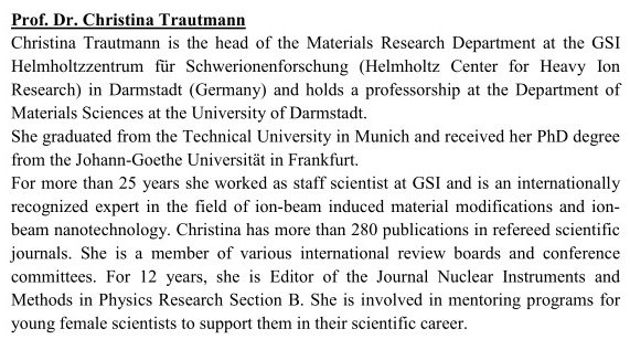 報(bào)告人:Christina Trautmann 教授 (德國重離子研究中心、NIMB主編)