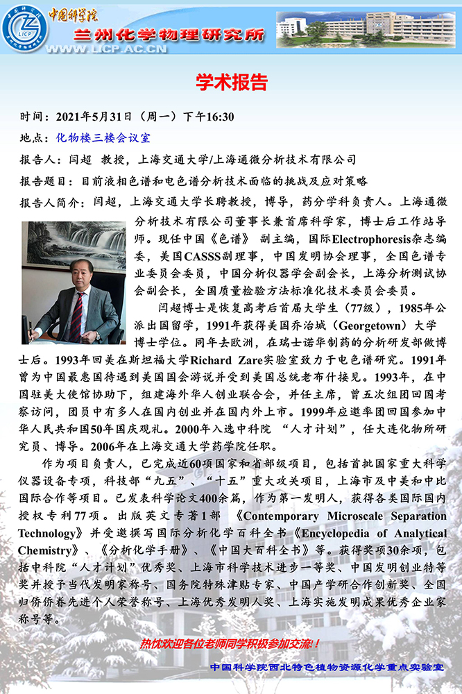 5月31日-學(xué)術(shù)報告-目前液相色譜和電色譜分析技術(shù)面臨的挑戰(zhàn)及應(yīng)對策略