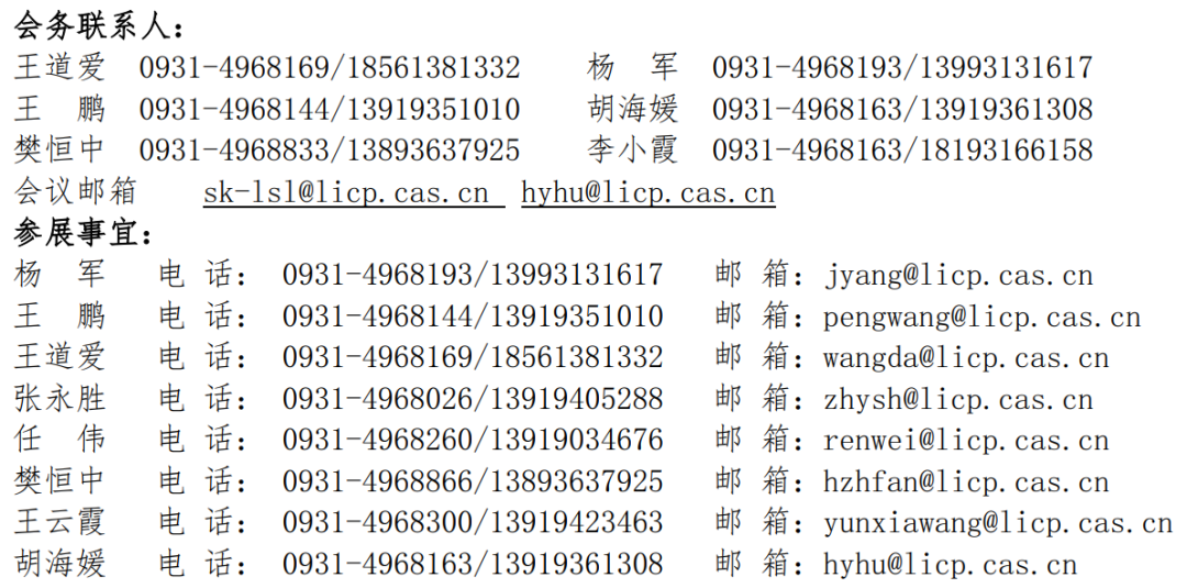 有意參展的單位請于3月10日前與會務(wù)組聯(lián)系。產(chǎn)品展示0931-4968193,郵箱:jyang@licp.cas.cn;專題展播及廣告宣傳0931-4968144,郵箱:pengwang@licp.cas.cn。