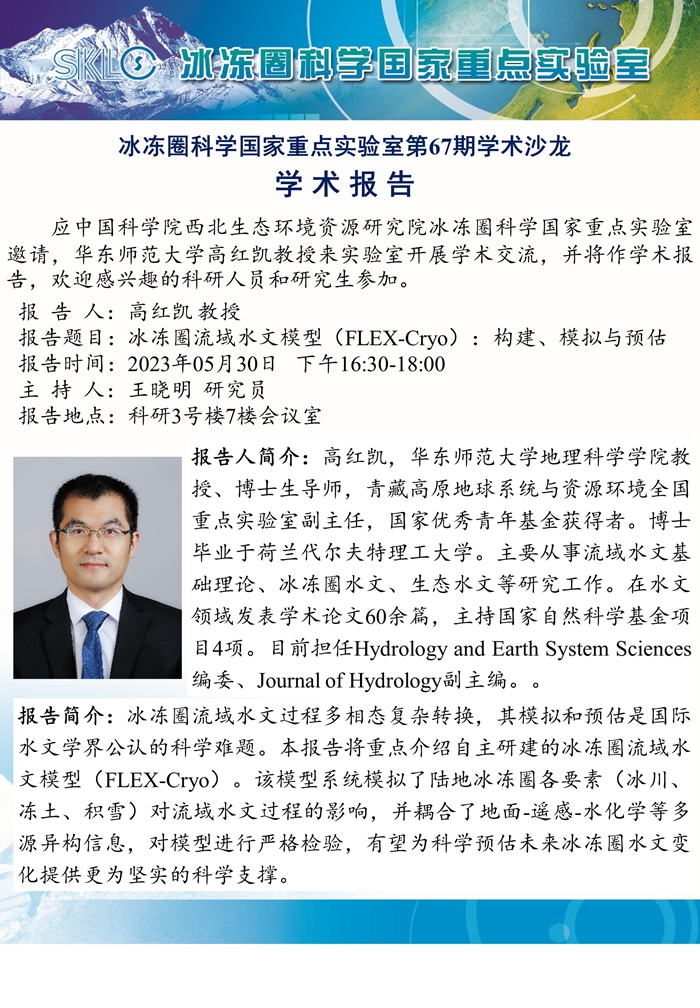 5月30日|冰凍圈流域水文模型(FLEX-Cryo):構(gòu)建、模擬與預(yù)估, 5月30日|冰凍圈流域水文模型(FLEX-Cryo):構(gòu)建、模擬與預(yù)估, 中國(guó)科學(xué)院蘭州分院">