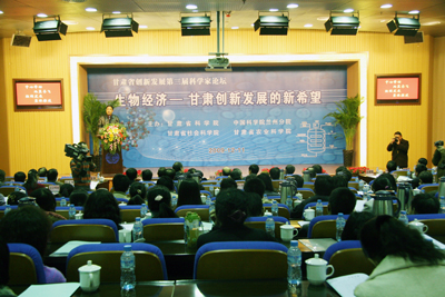 本次論壇的主題是“生物經(jīng)濟(jì)——甘肅創(chuàng)新發(fā)展的新希望”,來(lái)自甘肅省內(nèi)各方面的專家學(xué)者就甘肅省生物經(jīng)濟(jì)發(fā)展的戰(zhàn)略構(gòu)想、農(nóng)業(yè)生物產(chǎn)業(yè)發(fā)展面臨的機(jī)遇、珍稀野生藥用植物資源的保護(hù)與利用等方面發(fā)表專題報(bào)告,進(jìn)行熱烈討論。近代物理所李文建代表我院做了“重離子束誘變技術(shù)在生物產(chǎn)業(yè)中的應(yīng)用”的專題報(bào)告。來(lái)自甘肅省直有關(guān)部門、科研院所的100多位專家學(xué)者參加了論壇。